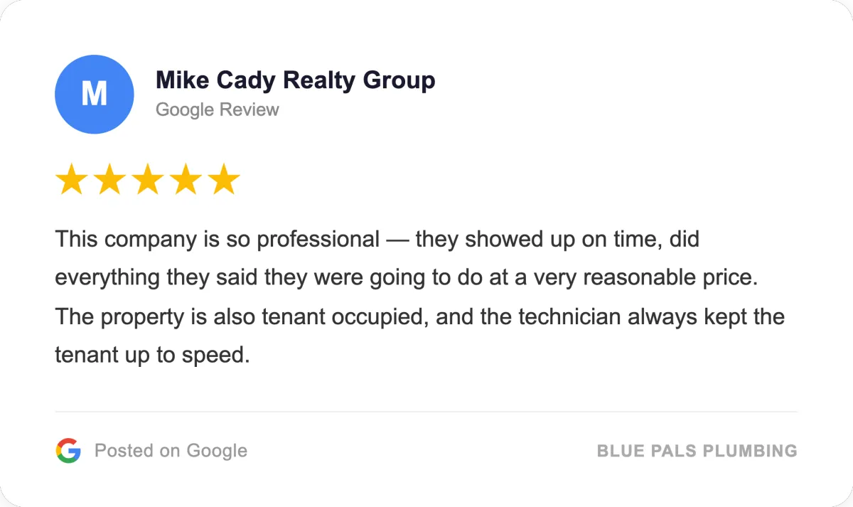 Blue Pals Plumbing provides professional drain cleaning for homeowners dealing with slow drains, stubborn clogs, and recurring backups. Whether the issue is in your kitchen, bathroom, or main line, our team clears the blockage and gets your plumbing flowing properly again.